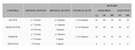Pemberian reward pada murid yang hadir di kelas disesuaikan dengan kriteria keaktifan yang dapat dilihat dalam tabel berikut: